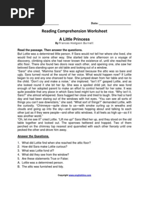 A little princess worksheets pdf. Worksheets that save paper ink and time. The first number in parenthesis following a vocabulary word indicates the approximate grade level at which the student should know the definition of the word while the following number indicates the page on which the word was found. USD 1000 Sales Tax.